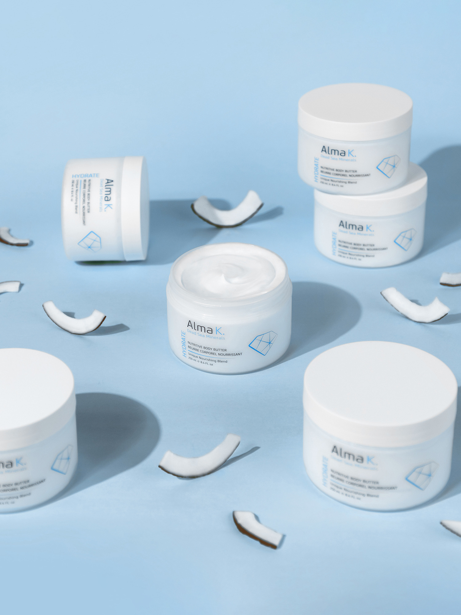 Alma K Nutritive Body Butter este un unt de corp cremos, conceput pentru a oferi o hidratare intensă și o hrănire profundă pielii. Formula sa exclusivă combină unt de shea hidratant și minerale de la Marea Moartă, îmbogățită cu vitamina E antioxidantă și extract calmant de mușețel. Este un produs ideal pentru toate tipurile de piele, asigurând o senzație de îngrijire profundă și echilibrată. Parfumul delicat de ceai alb și neroli completează experiența de îngrijire.