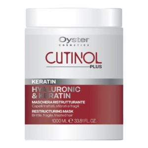 Masca restructurantă pentru părul tratat, casant și fragil Oyster Cosmetics Cutinol Plus Keratin Mask este un tratament intensiv, conceput pentru a revitaliza și repara părul deteriorat. Această mască este îmbogățită cu cheratină și acid hialuronic, două ingrediente esențiale pentru restructurarea părului, oferind efecte vizibile de reparare, hidratare și reducere a efectului frizz, lăsând părul moale, radiant și plin de volum.